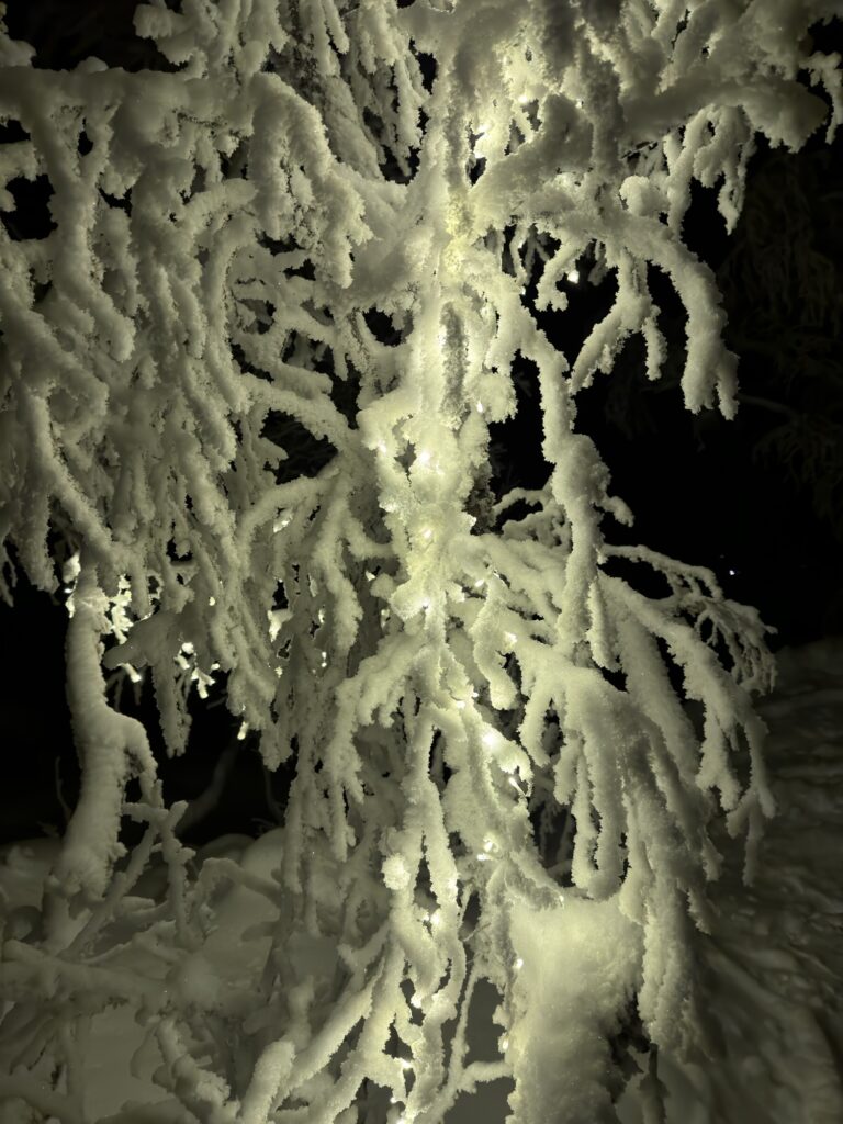 Snow coats each branch 360 degrees